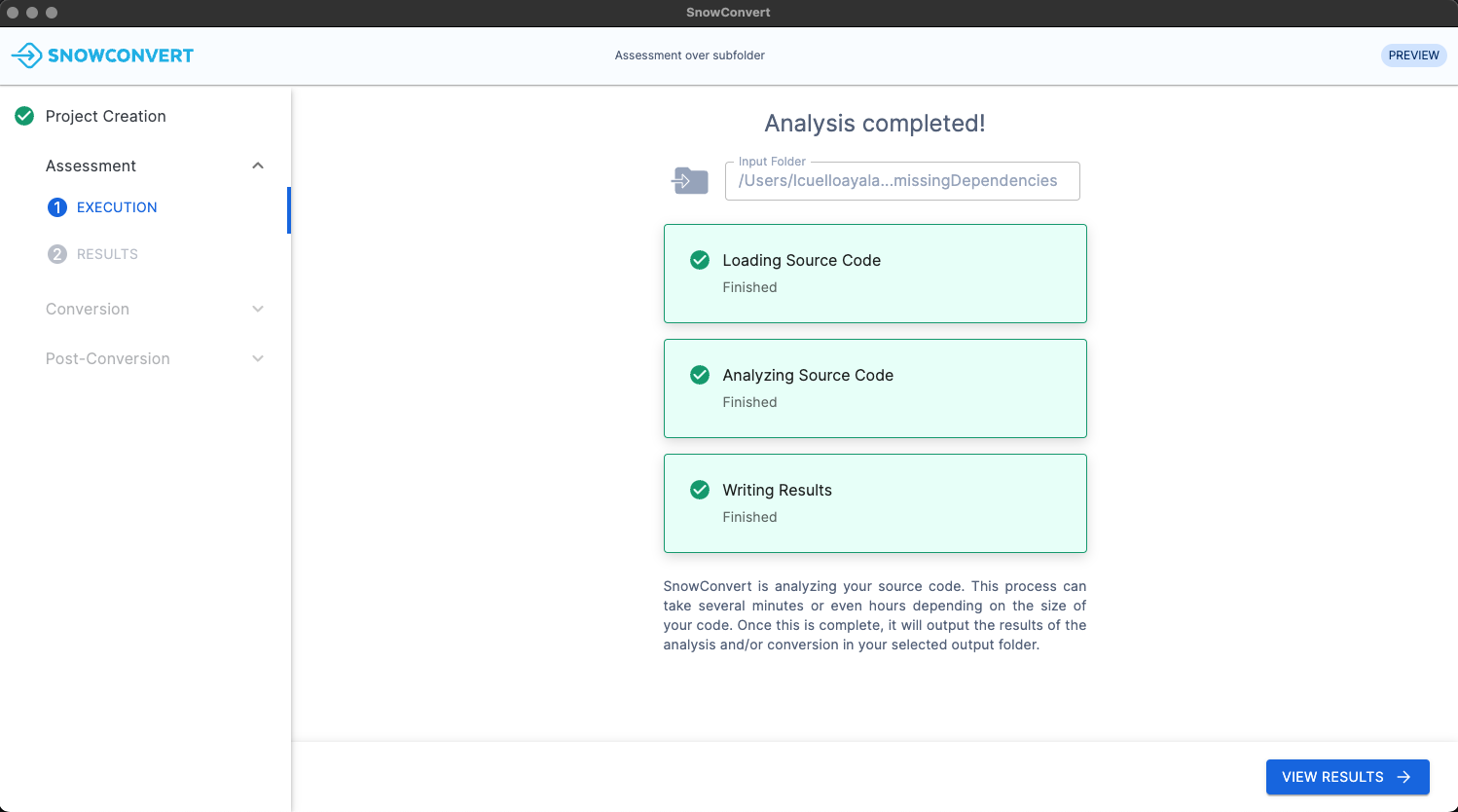 When the process is finished you are able to navigate to the results screen, which will give you insights about the analyzed code and the conversion rates to move your code to Snowflake.