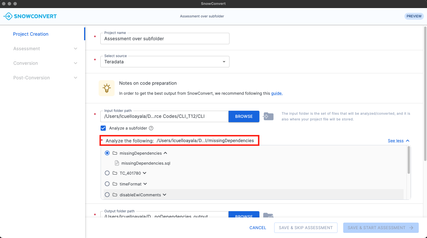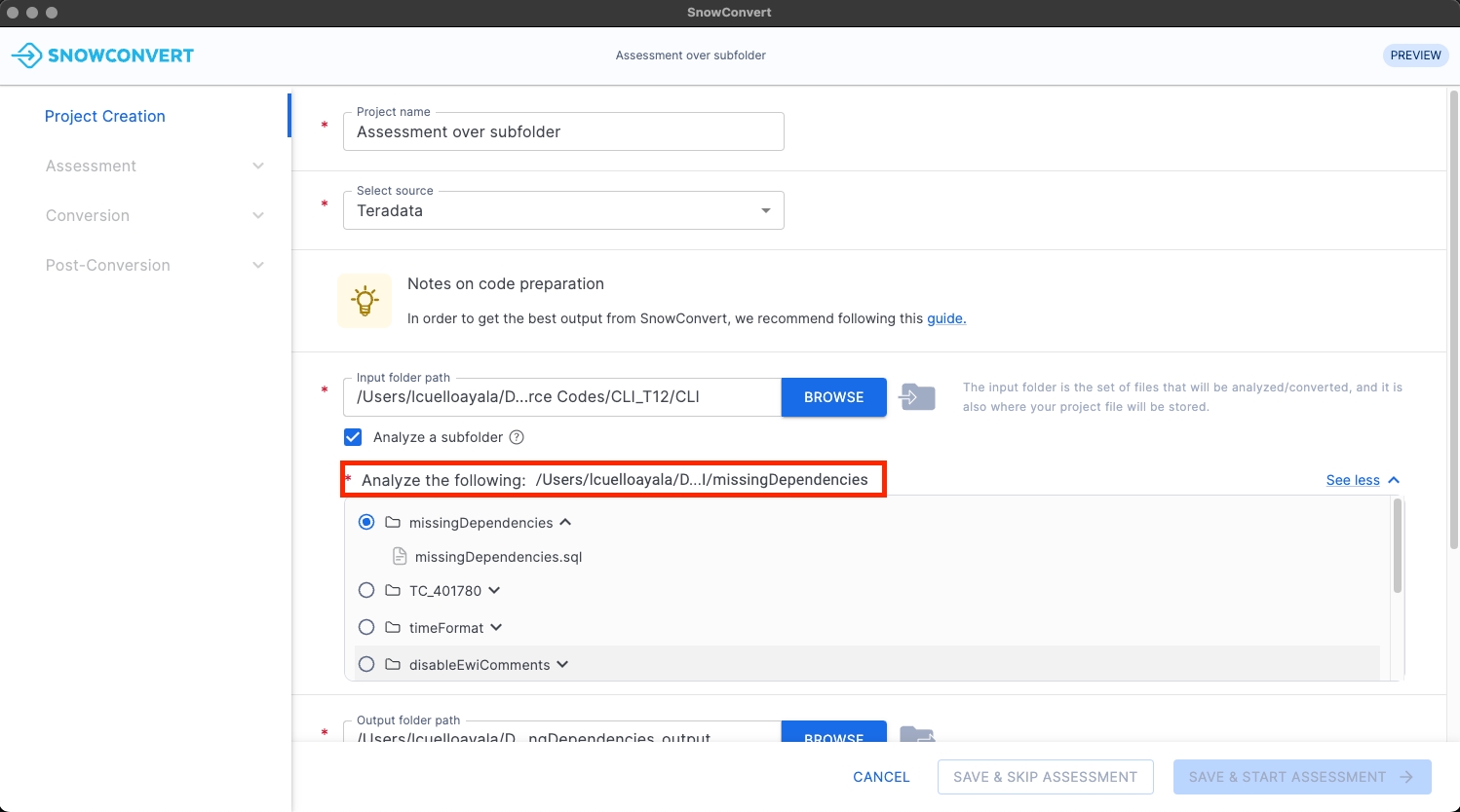 SnowConvert allows you to run an assessment over a specific portion of your code, ignoring the parts that do not need to be analyzed.