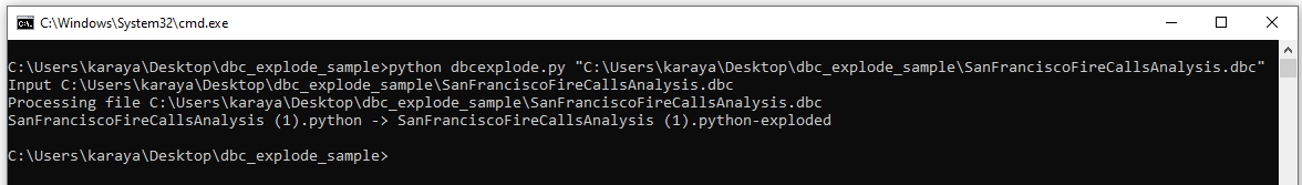 The script will create a folder named <dbc_file_name>.dbc-exploded in the same directory where the dbcexplode.py script is placed.