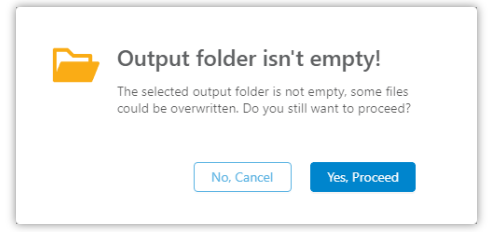 If there are already files in the output directory, you will get a message once you hit "Start Conversion" that will ask you if you'd still like to proceed with the conversion.